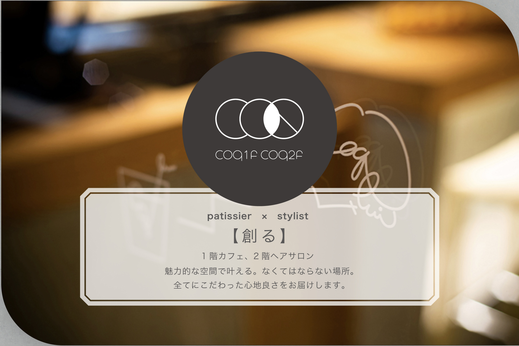 カウンセリングを大切にし、ヘアスタイルを創る。一人一人のらしさを引き出す空間。施術中にはcoq1fカフェのドリンクや焼き菓子もお楽しみいただけます。